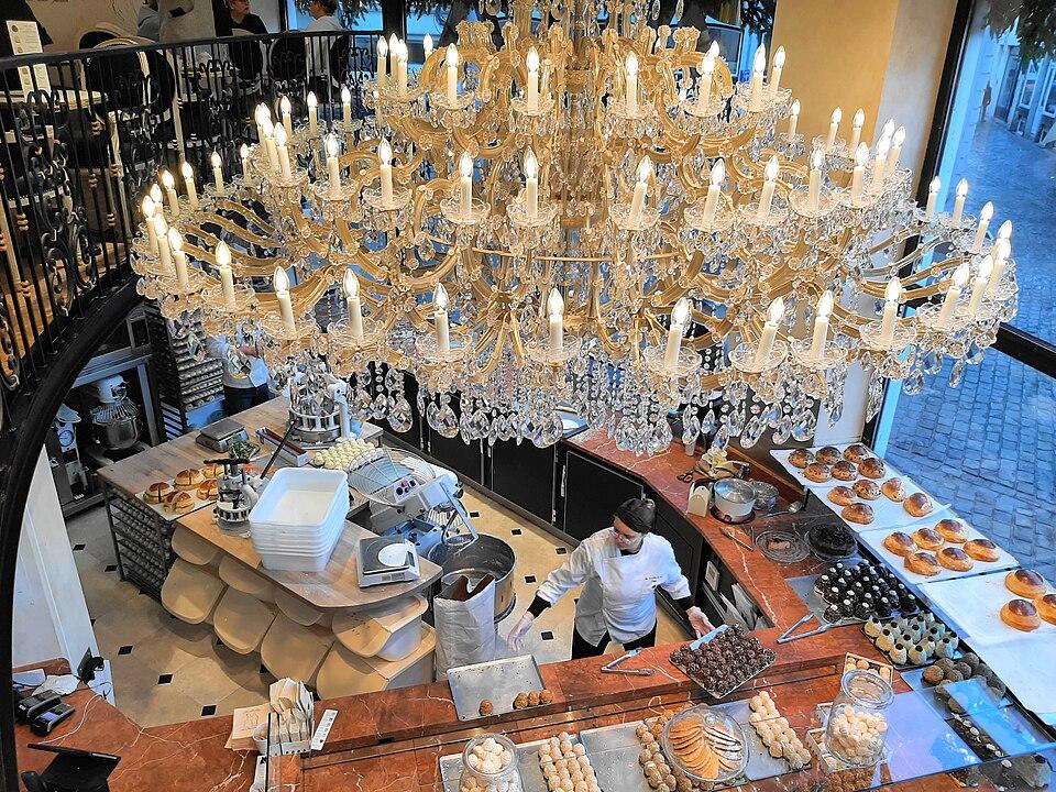 Fast hätte es doch noch mit einem späten Lunch geklappt. Aus dem Auberge des Franciscains traten Gäste aus, ein Zeichen für „geöffnet“. Freie Tische, nach uns eine vierköpfige Familie mit gleichem Interesse. Ein Mitarbeiter schob sich heran, auch ohne Französischkenntnisse wurde schnell klar, der Koch hatte Feierabend, kein Essen, nur Getränke. Er wandte sich zur Küche, ob diskutiert (mit dem Koch) wurde, war nicht zu erkennen, die vierköpfige Familie war bereits wieder verschwunden, etwas Trinken könnte man noch, kam er wieder. So what, auch wir zogen davon, Jola schweren Herzens, denn die Speisekarte bot genau das, was sie gerne gegessen hätte.