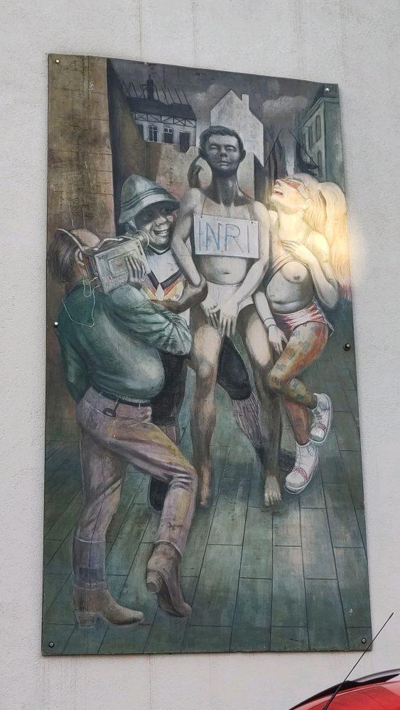 Neben der ältesten Herberge Osnabrücks, Walhalla, das Figurentheater hier ansässig, nächste Aufführung erst im November, heute in der Lagerhalle Comedy-Nacht, ausverkauft, stand auf dem Plakat. Remarque Erinnerungshaus, bereits einmal besucht, der Brunnen des Westfälischen Friedens, ebenfalls schon im Bild eingefangen. Noch nicht abgelichtet die Hauswandmalereien in der Mühlenstraße….