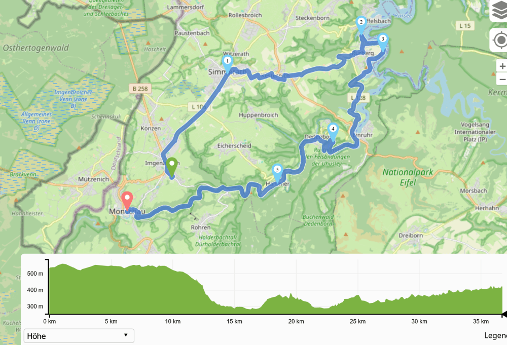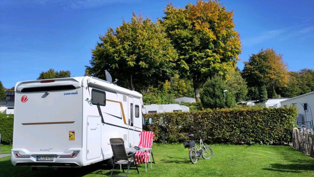 Auf längere Pausen verzichtete ich, wollte unbedingt vor 13 Uhr (Mittagspause Campingplatz) in Monschau, respektive Imgenbroich ankommen, was letztendlich auch gelang. „Zum Jone Bur“ hieß uns willkommen, Jola begeistert vom Empfang und der Auskunftsfreudigkeit des Personals. Schöner geräumiger Platz, Nachbarn aus Holland, ebenfalls gerade angekommen.