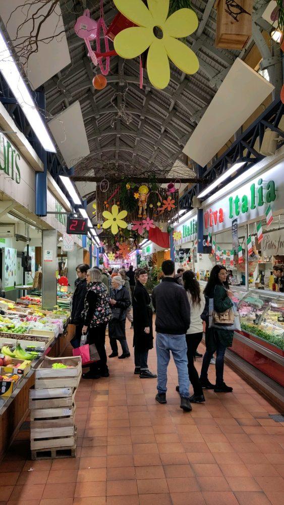 Auf Umwegen fanden wir eine Filiale unserer Hausbank, ein bisschen Bargeld für unterwegs kann ja nichts schaden. Lobenswert (aus meiner Sicht), es gab eine Markthalle, wenn auch mit mehr oder weniger Charakter einer Imbissmeile.