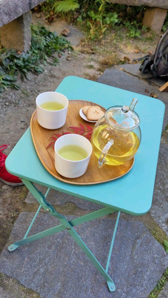 Nebenan eine Teeplantage mit Teehaus und Ausschank. Ich stibitzte einen Trieb von einem Teeast. Vielleicht habe ich diesmal mehr Glück als mit dem Mitbringsel von den Azoren.