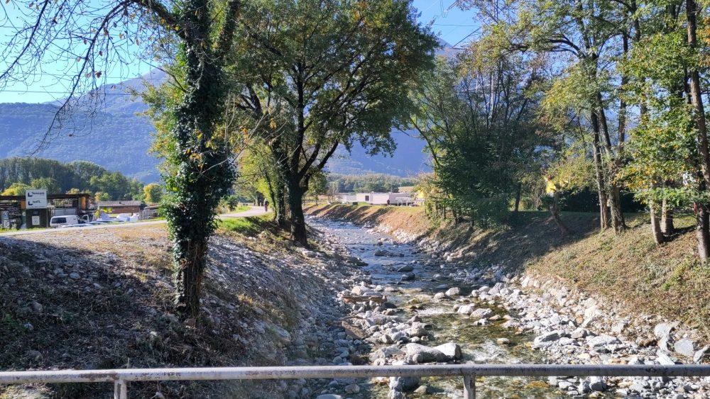 Der Radweg 31, gut ausgeschildert, eben, kaum der Mühe wert zu treten, so leicht ließ es sich strampeln. Klein fühlte man sich zwischen all den Bergen. Landwirtschaftlich geprägtes Tal, an den Hängen ab und zu Weinanbau, der Ticino (oder heißt es die?) teilweise eingedeicht. Selbst Bächlein wie Riarena schienen gezähmt werden zu müssen.