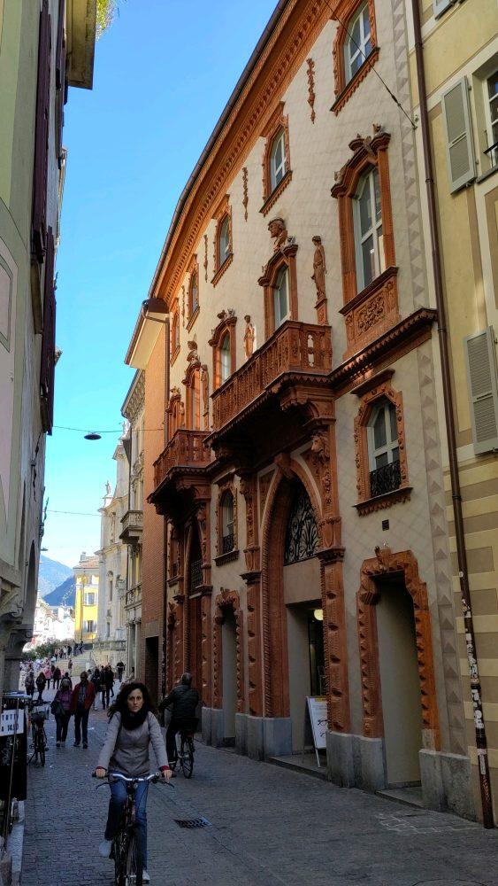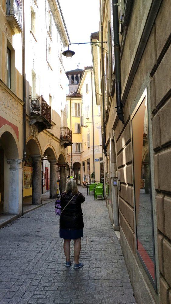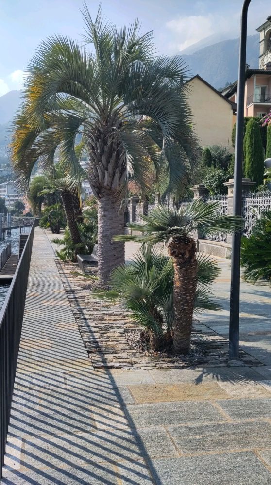 Gleiche Strecke zunächst wie gestern an der Uferpromenade auf dem „langsamen“ Radweg bis Locarno. Heute mehr sportlich orientierte Menschen unterwegs, Rollerskates, Jogger und natürlich Radfahrer, die nicht zwischen „schnell“ und „langsam“ unterscheiden konnten. Die nagelten hier zwischen allen im Slalom hindurch. In Locarno ließ ich mich von der Radroute ablenken, ein Schlenker in die Altstadt schien lohnenswert.