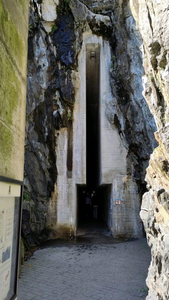 Wir besichtigten die Festung, der schmale Eingang aus Beton ….