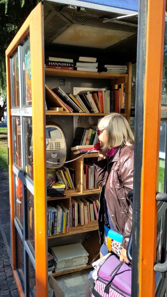 Danach traten wir den Marsch zurück zum Theater an, wo unsere Räder auf Abholung warteten. Die Telefonzelle lenkte uns kurzzeitig ab…