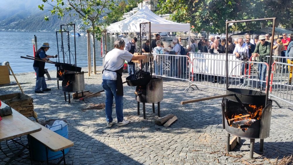 Nun heute besuchten wir in Ascona ein Kastanienfest an der Promenade. Nur gut, dass wir mit dem Rad anreisten, Stau in allen Zufahrtsstraßen. Selbst der Radparkplatz voll belegt. Gleich den ersten Eisladen nutzte Jola, um eine Pause einzufordern. Cappuccino und zwei Kugeln Eis… Blick auf den Lago gab es kostenlos dazu.