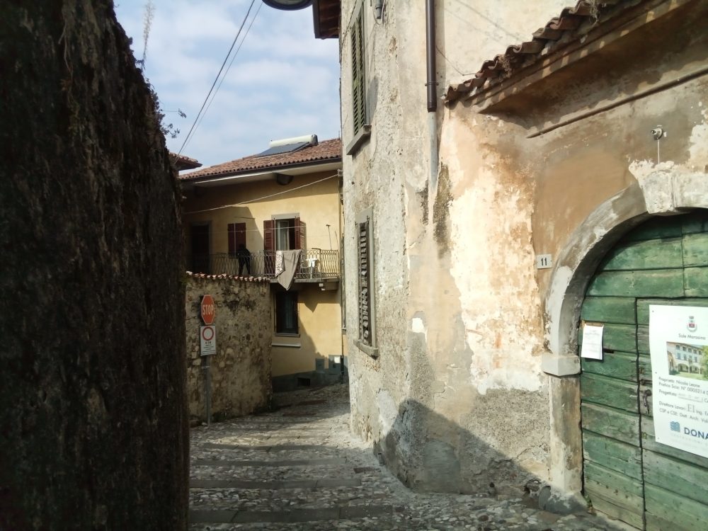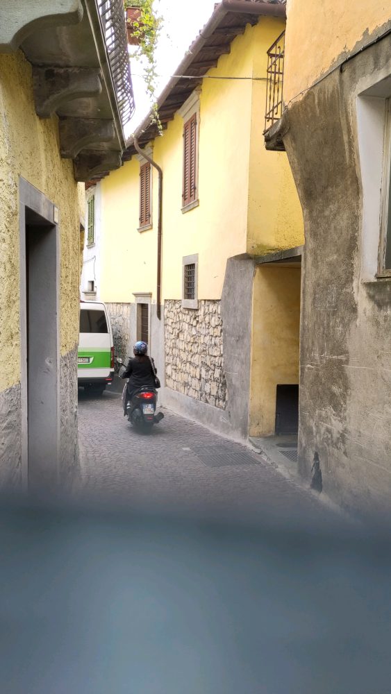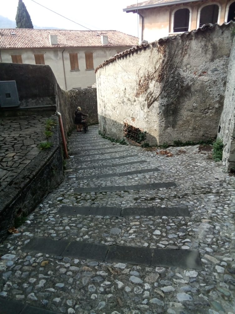 …. einen Blick, quasi hinter die Kulisse zu werfen, radelten wir eine Gasse hinauf, in der Hoffnung, das historisch Alte zu finden, der Ort nannte sich Sale Marasino. Doch außer holprigem Belag und morbid wirkendem Gemäuer nichts wirklich Sehenswertes.