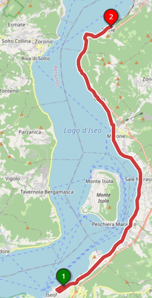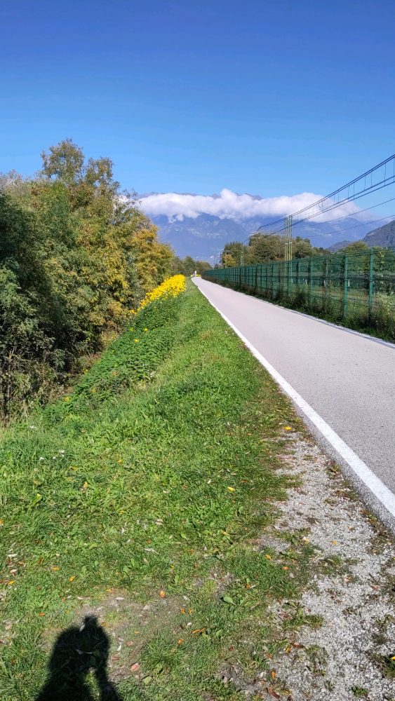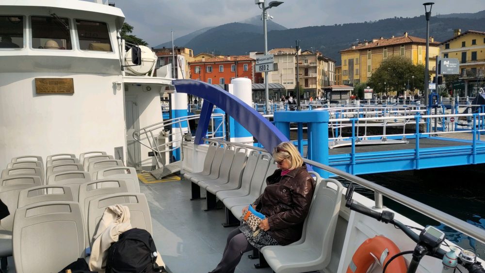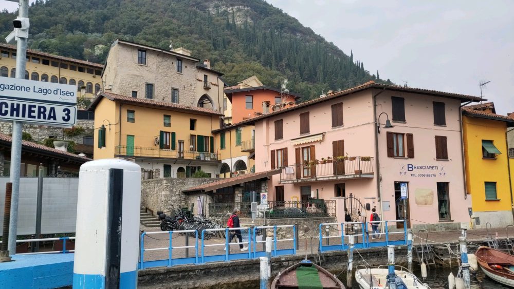 Es herrschte mildes Klima, trotz bedecktem Himmel. Auf den ersten 5 Km war leider wieder die Fahrbahn öfters mit den Autos zu teilen. In Sulzano die dichteste Verbindung mit der Fähre auf die Insel, wir beließen es bei der Besichtigung des Fähranlegers, auf den eine Fähre zusteuerte…