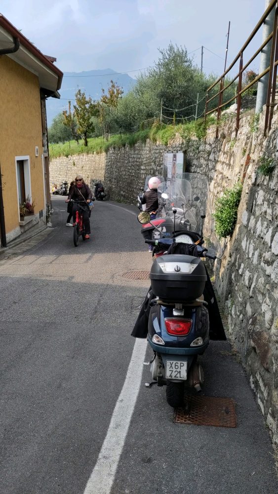 Nach befriedigtem Einkaufstrip begann der erste Teil der Seeumrundung, nach Recherche und Auskunft der „Chefin“ auf dem Campingplatz seien das rund 65 Km. Keine Sorge, die sollten heute nicht zurückgelegt werden. Die schnuckelige Seite von Iseo kaum verlassen, fuhren wir auf einer ehemals als Eselspfad genutzten Straße hoch über der viel befahrenen SP X?, wo man über Steinmauern einen Blick ins Naturreservat werfen konnte…