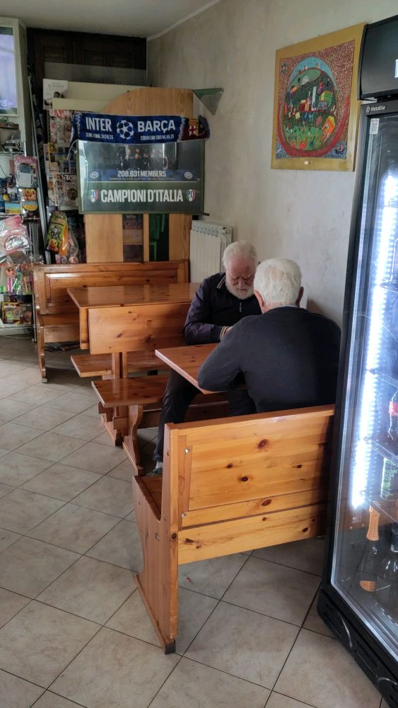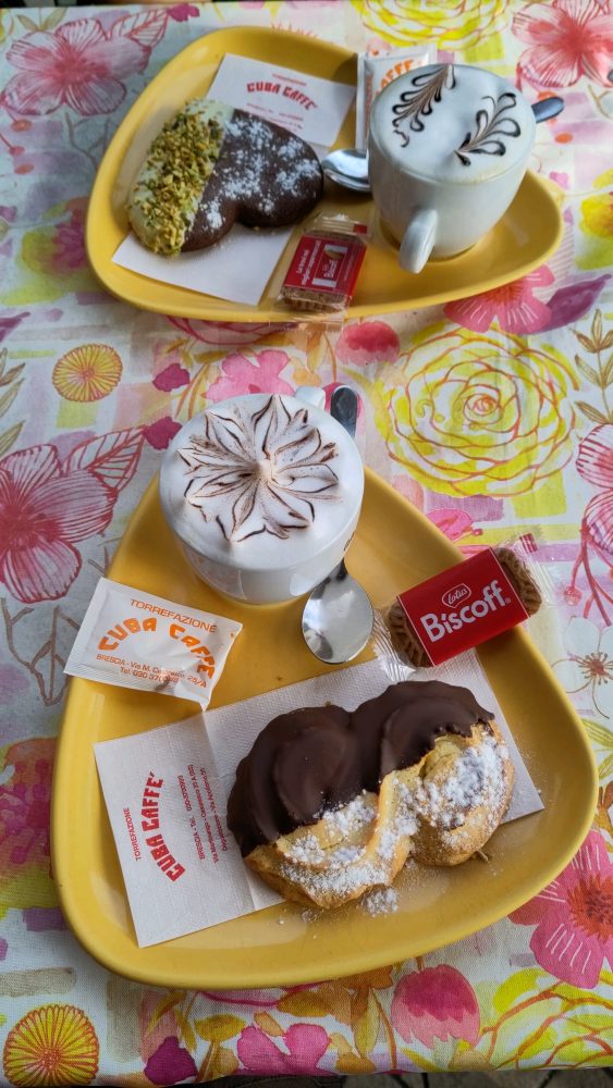 Wir fanden eine Pausenstation namens Bar Tina, endlich ein Stück Kuchen und Cappuccini mit Liebe gemacht….