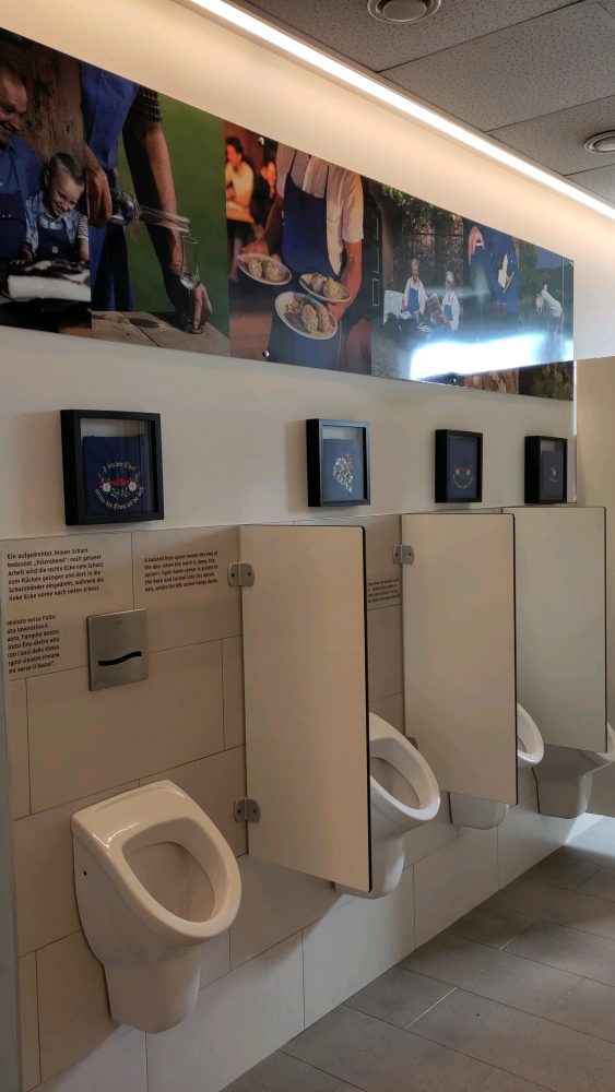 Ein Blick in die Sanitäranlage, uns noch bestens aus früheren Aufenthalten bekannt, jedoch noch nicht in diesem Blog erwähnt / gezeigt. Schön gestaltet, mit regionalen Bezügen geschmückt….