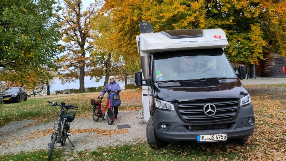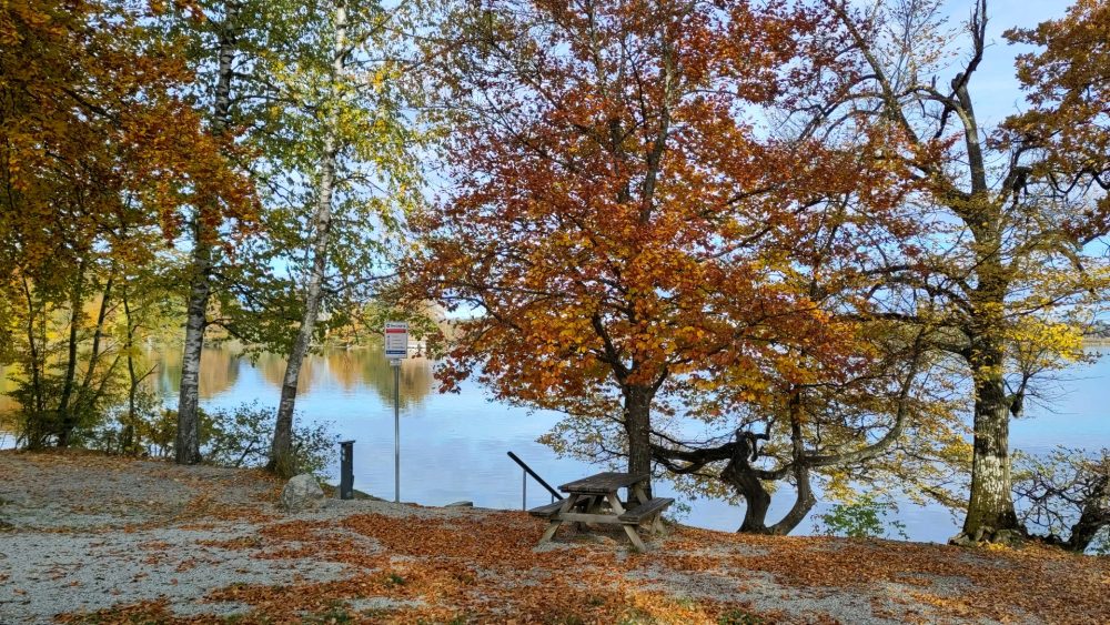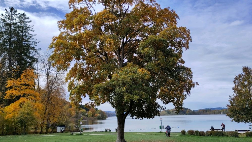 Den Campingplatz in Bozen verließen einige Gäste so früh, dass wir davon gar nichts mitbekamen. Kann man dadurch Stau und LKW-Kolonnen vermeiden? Wir schafften die Abreise um 09.15 Uhr. Nicht ganz so traurig, weil das Wetter ohnehin sich den Unbillen des Herbstes unterwarf. Für mich blieb nach 3,5 Stunden Fahrt für etwas mehr als 200 Km das Resümee: keine Staus auf der Brennerautobahn, die Maut teurer, die Vermeidung der österreichischen Vignette mit Gurkerei verbunden, um nach Innsbruck bzw, Zirl zu kommen. In Murnau herrschte hingegen gegen 13 Uhr ein Rest Goldenen Oktobers mit mehr als 19° und Sonnenschein. Wir durften uns in Seehausen selbst einen Platz auf dem Campingplatz Halbinsel Burg aussuchen.