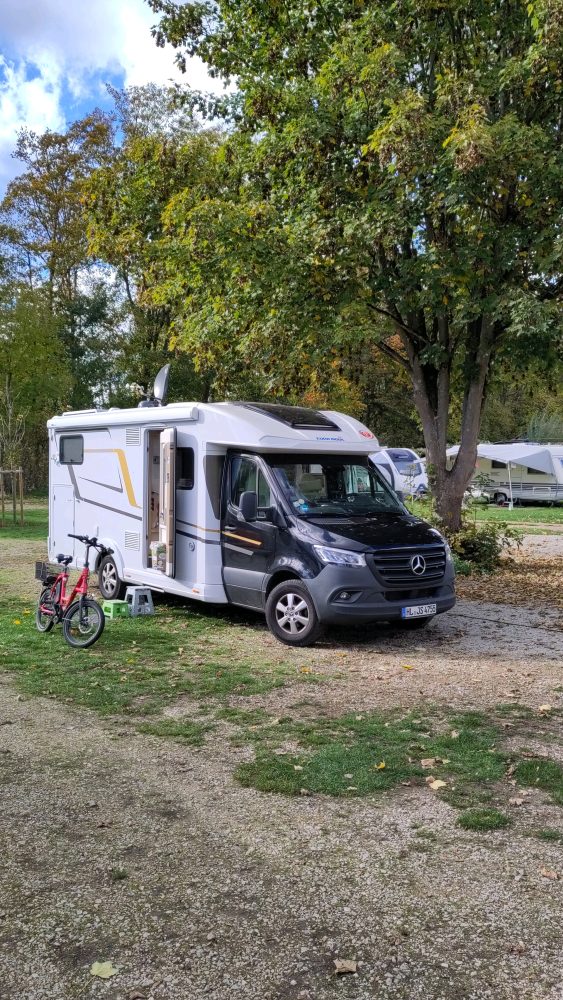 Punkt 10 Uhr auf die Piste, gefürchtet war die Durchfahrt durch München, doch entgegen früherer Reisen, blieb ein Stau aus, möglich, dass das an den fertiggestellten Tunneln lag. Auch sonst ging’s zügig voran. Nach 2,5 Stunden eine kurze Pause. Nach vier Stunden erreichten wir Bad Staffelstein, Kurcampingplatz. Wir buchten eine Nacht, diesmal mit Schwimmbadbenutzung inklusive.