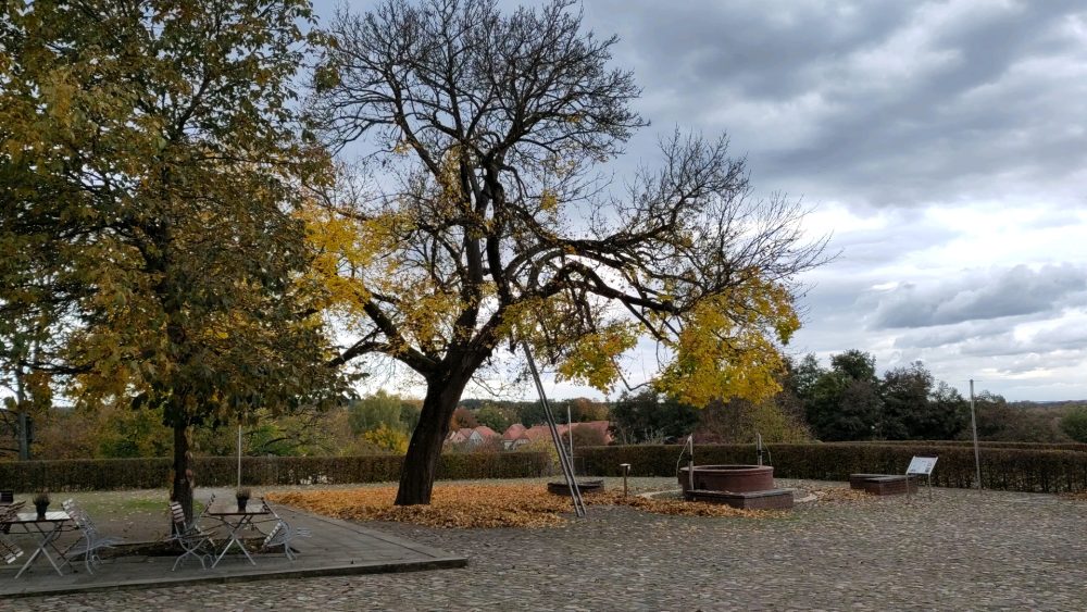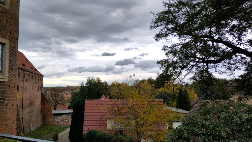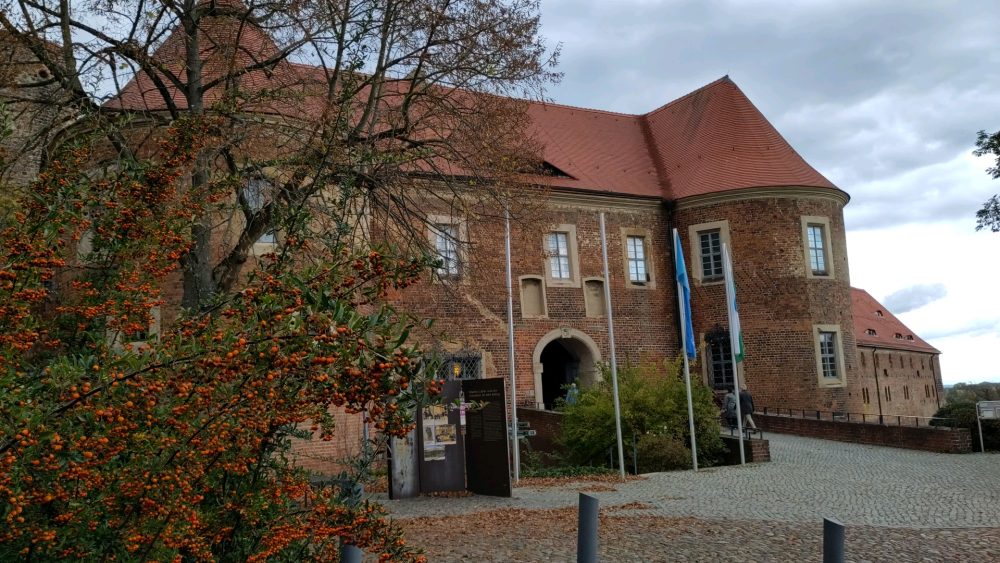 Im Schnelldurchlauf: es regnete unterwegs längere Zeit, hellte in Sachsen-Anhalt auf, bei der Abfahrt Thurland erstmals Stillstand (Unfall), Verzögerung von etlichen Minuten. Danach auf der A9 Elefantenrennen, immerhin dreispurige Autobahn, da kam man mit dem WoMo auch ganz links noch ganz gut vorbei. Mit einer Kurzpause waren die rund 365 Kilometer bis Bad Belzig nach mehr als 4 Stunden zurückgelegt und wir parkten auf dem WoMo-Stellplatz an der Stein-Therme. Mit der Stellplatzgebühr erhielt man 10% Ermäßigung auf den Eintritt in die Therme. Bei angezeigten 18° suchten wir die historische Altstadt auf, keine 3 Km entfernt. In Bad Belzig fand man traditionelle Geschäfte, zumindest dem Namen / der Bezeichnung nach, wie bzw. „Miederwaren“. Mit Gespür fand ich eine Bäckerei, Brot und Brötchen waren bei uns alle, ein Geschenk (im Nachgang lasen wir, es war die älteste familiengeführte Bäckerei Gericke). Günstig und gut und leckere Sachen und zwei humorvolle Mitarbeiterinnen. Nach Vorratsauffüllung ging’s um die Ecke zur Burg Eisenstein. Sanierungsbedarf hier an der Burg, ein Aufsteller informierte, hier würde ein Hotel mit 26 Zimmern entstehen. Laut Aufsteller war Martin Luther im Rahmen seiner Schul- und Kirchenvisitation hier vorstellig.