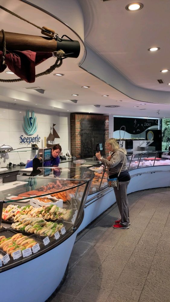 Am Alten Holzhafen ein kostenloser Parkplatz, da nahm man die 500m Fußmarsch gerne in Kauf. In der Seeperle viele hungrige Mäuler, wir hatten Glück, zwei Familien räumten gerade einen Tisch. Nach Speisen Einkauf von Räucherfisch, erstmals entdeckt „geräucherten Rotbarsch“.